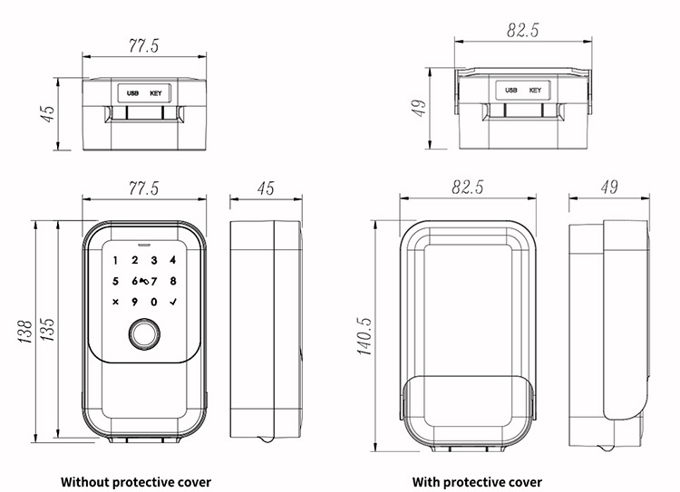 | User Capacity | Fingerprint: 100; Passcode: 250 and Card: 1000. |
